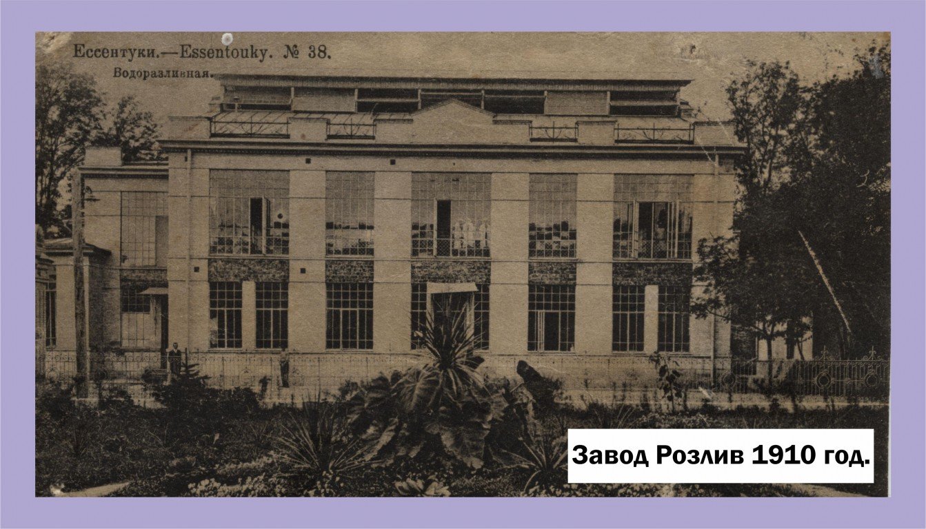 Первая Разливная Ессентукских вод была устроена в 1871г. при галерее источника №17. Позади галереи, к ее восточной стене было пристроено деревянное сооружение на бутовом основании, где первоначально и производился розлив минеральной воды. Эта пристройка имела ширину 6 метров, высоту 3 метра и по длине была короче длинны галереи. Вход в пристройку был сделан с северо-западной стороны. Разливной управлял заведующий группой. Укопорочные машинки были устроены так, что при их работе вода наливалась в бутылку, почти не соприкасаясь с воздухом, и тотчас закупоривалась.