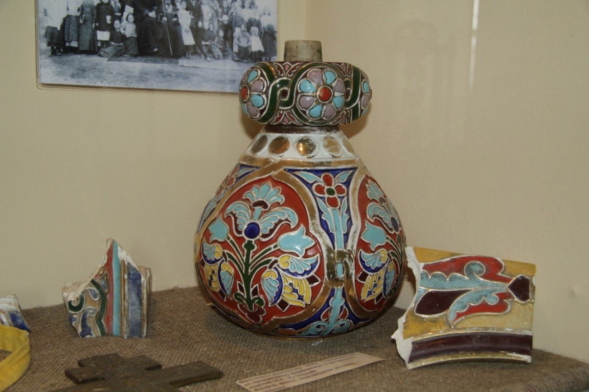 Фрагмент в виде вазона, представленный в экспозиции, подарен музею директором детского дома Мишиевой Ларисой.